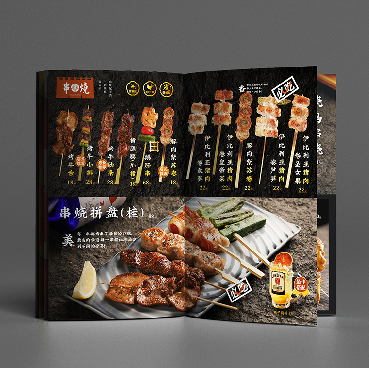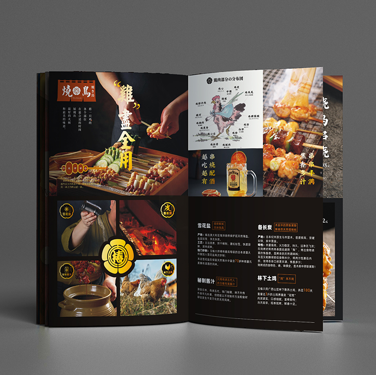 工作內容:日本料理燒鳥居酒屋菜譜規劃,日本料理菜譜編排設計,日本料理燒鳥菜品文案話術撰寫,燒鳥料理居酒屋菜譜印刷裝訂。