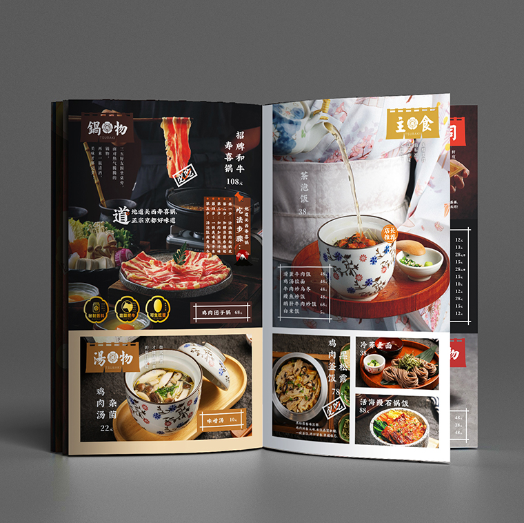 因此,品深餐飲全案設計中,菜譜不僅要實現營銷型的經營功能,還要塑造品牌的價值,體現品牌核心優勢。品深餐飲一貫堅持通過招牌菜品、核心菜品合理分布排序,讓消費者在前6頁完成點單需求,化被動選擇點菜為主動營銷,從而讓菜譜達到提升指定菜品點擊率,打造明星菜品,提升人均或控制人均消費目的。