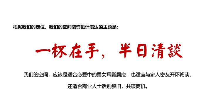 1、空間是悅得閑品牌內(nèi)涵的直觀化、立體化表達(dá)。悅得閑的空間裝飾應(yīng)該呈現(xiàn)鮮明的品牌特征,符合廣式點(diǎn)心茶樓的品類特性;