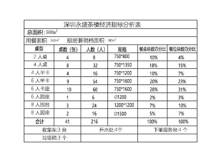 2、坪效計(jì)算:坪效重點(diǎn)就是考慮位置的利用率和位置的分布狀況。通過我們的研究發(fā)現(xiàn),深圳、廣州等地茶樓用餐座位利用率最高的多數(shù)是4人位和6人位。而在上海等地,最多應(yīng)該是4人位和2人位。我們不僅要關(guān)注位置的數(shù)量,更應(yīng)該綜合考慮位置的利用率。如果長(zhǎng)期出現(xiàn)4個(gè)人的客人卻使用6人桌位,說明位置的實(shí)際實(shí)用率才70%而已,這是極度不合理的坪效。我們悅得閑的餐區(qū)位置6人位為主,4人位可以臨時(shí)拼接成8人位,甚至更多的位,滿足顧客的多樣化需求,提升餐區(qū)的位置利用率。