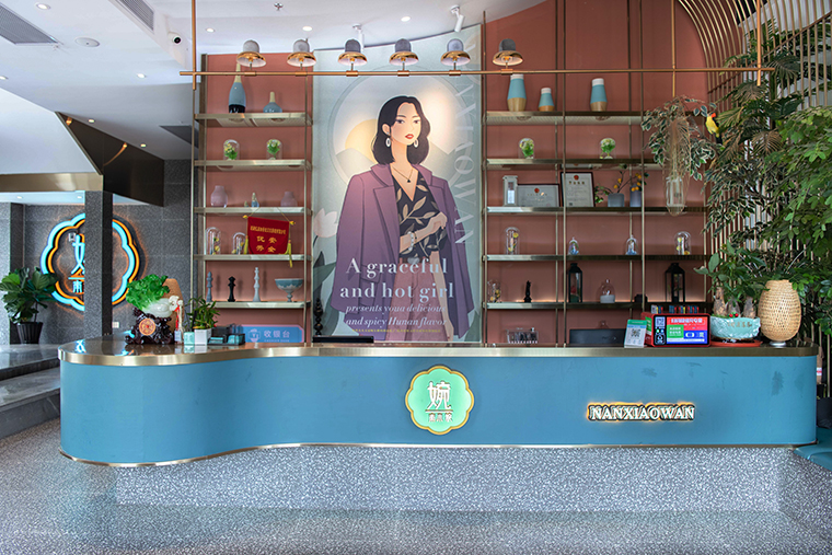 2、局部照明設計,也是品深餐飲設計所說的品牌形象凸顯照明設計,就是為了強調特定的目標而采用的照明方式。比如品牌的主形象,品牌核心訴求文案廣告字,餐廳形象區域的水景、景觀區域等。比如品深餐飲策劃設計的悅得閑廣式點心茶樓的品牌形象畫面,南小婉餐廳的前臺人物畫面等。通過這種重點局部照明將顧客的視線吸引到餐廳中有品牌形象特色、有文化氛圍、有藝術情調的地方,讓顧客主動去關注我們的品牌,發掘我們的品牌,傳頌我們的品牌。