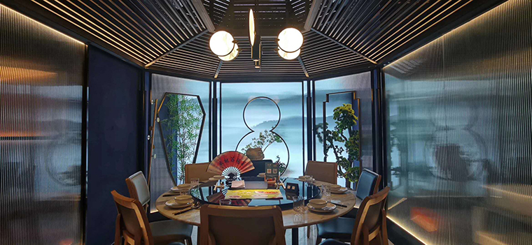 3、環境氛圍照明設計,這是餐飲空間設計進入到藝術品位的高級階段了。這時候的燈光設計包含了照明和色彩心理學、環境陳設藝術等多種美學領域,照明燈具的外觀款型也成了燈光設計的重要工作,燈具基本上都需要專屬定制,必須完全符合品牌的調性,定制的燈具也是整個空間用餐氛圍的重要組成部分。通過以光與色彩營造出符合顧客心理需求的氛圍,追求更高的生活品質。品深餐飲設計多年服務的杭幫菜品牌——二小姐的店.觀瀾店,整個照明完全與空間氛圍融為一體,讓顧客流連忘返,嘖嘖驚嘆!