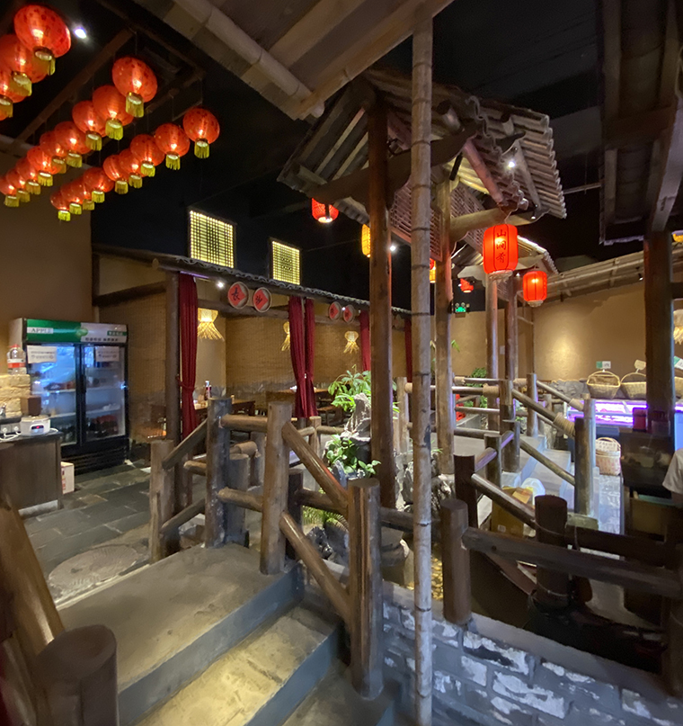 4、燈具款式及布置。燈具外觀款式的設計是餐飲空間設計的一部分,是空間陳設藝術的重要表現形式。不同的餐飲品類對燈具款式及材質都有特殊的要求。除了常規的玻璃、金屬、塑膠等工業材料外,還有一些自然的原生材料,如竹、藤、線、紙等。在品深餐飲全案策劃設計中,燈具的款式和材料都是統一在全案品牌策劃設計的系統中,比如我們設計的悅得閑廣式點心茶樓,專門原創設計的吊燈模仿鳥籠造型就是為了傳遞廣州老茶客提籠遛鳥的飲早茶的悠閑幸福生活,和整個品牌文化高度契合。