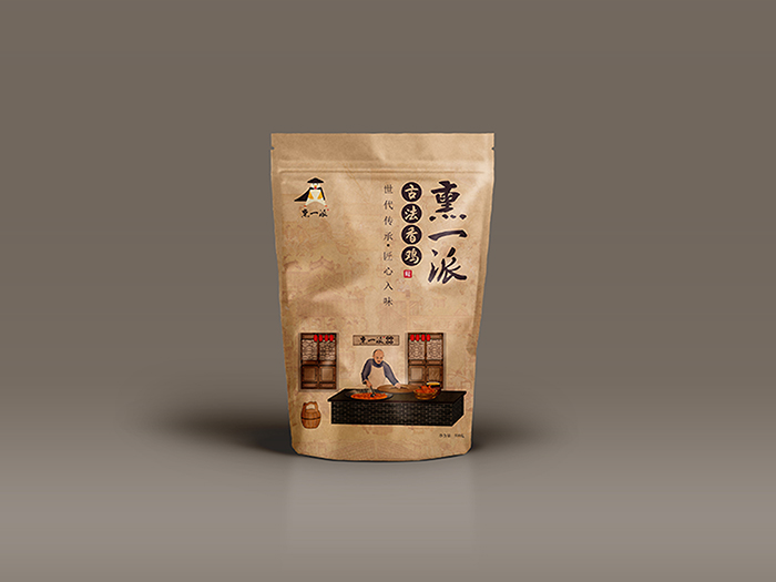 李總一開始將此香雞的做法和南方一樣,稱為燒雞。經過我們實地考察,試吃。其實這是典型的熏雞做法。整只雞經過長達10個小時的鹵煮,味道已經進入到雞肉中,瀝干水后再用冰糖熏烤,色澤紅亮,極富嚼勁。于是,我們將此香雞命名為“熏一派”,在品牌命名中直接將此雞的做法亮出來,一方面可以讓顧客一目了然,知道我們的香雞特點;另一方面極大的降低傳播成本。且熏一派三個字簡單易懂,讀音平仄起伏,鏗鏘有力;派還有自成一派,門派之說,更表明我們立志做好的決心。
