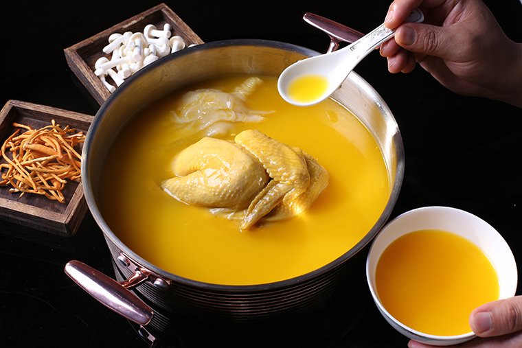 “喝著啤酒泡枸杞”“熬最晚的夜,敷最貴的面膜”……這些看似調(diào)侃的語(yǔ)氣,實(shí)則透露著時(shí)下全民對(duì)健康生活方式的追求。所以,廣式火鍋要做到既滿足火鍋情結(jié),還帶有養(yǎng)生屬性,在這方面豬肚雞特點(diǎn)非常契合。傳統(tǒng)的廣東豬肚雞都要輔以藥材入湯,一鍋濃郁的白湯營(yíng)養(yǎng)滋補(bǔ),這是養(yǎng)生屬性;同時(shí),豬肚雞又是廣式火鍋中唯一能加“辣”的火鍋,這里的“辣”指的是胡椒,喝湯吃肉后還用廣州特色食材作涮菜,最后主食再來(lái)一份燒臘,可謂火鍋的完美配置。