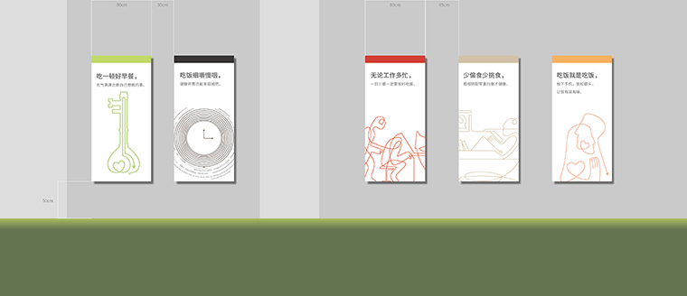 品深餐飲設(shè)計(jì)通過對匯鈺二食堂的調(diào)查研究,認(rèn)為在簡餐的空間中植入比較多的飲食文化,就如同媽媽的叮嚀一樣,不斷在你耳邊強(qiáng)調(diào)要按時(shí)吃飯、不要偏食挑食,要注意休息,少玩手機(jī),放松心情等。