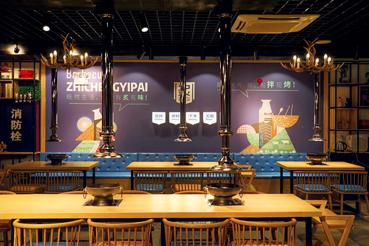 炙成一派作為海口首家現拌烤肉,具有明顯的市場先發優勢,在空間中通過氛圍體驗,品牌訴求,在消費者心目中植入現拌烤肉就是炙成一派,將品牌等同于品類。通過空間的視覺體驗,燈光感受,食物的味道,家具軟裝的觸感體驗,讓顧客能放松心情,享受美食,有情懷,有情調,有趣味。顧客置身其中,心靈宣泄,釋放壓力,最終產生品牌的粘性和較高的復購率。
