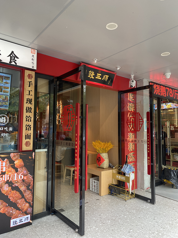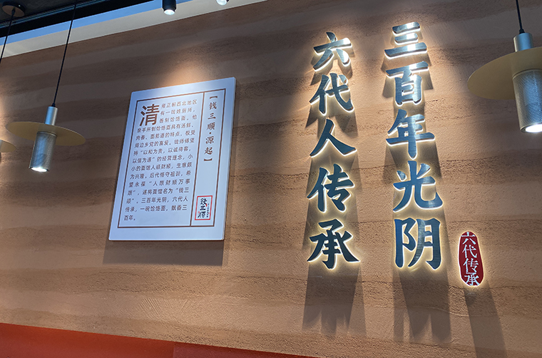 2、門店入門口上方懸掛錢三順匾額,匾額是中國文化中非常鮮明的符號。懸掛匾額讓人聯(lián)系歷史悠久,品牌是老字號,是傳承多年的。
